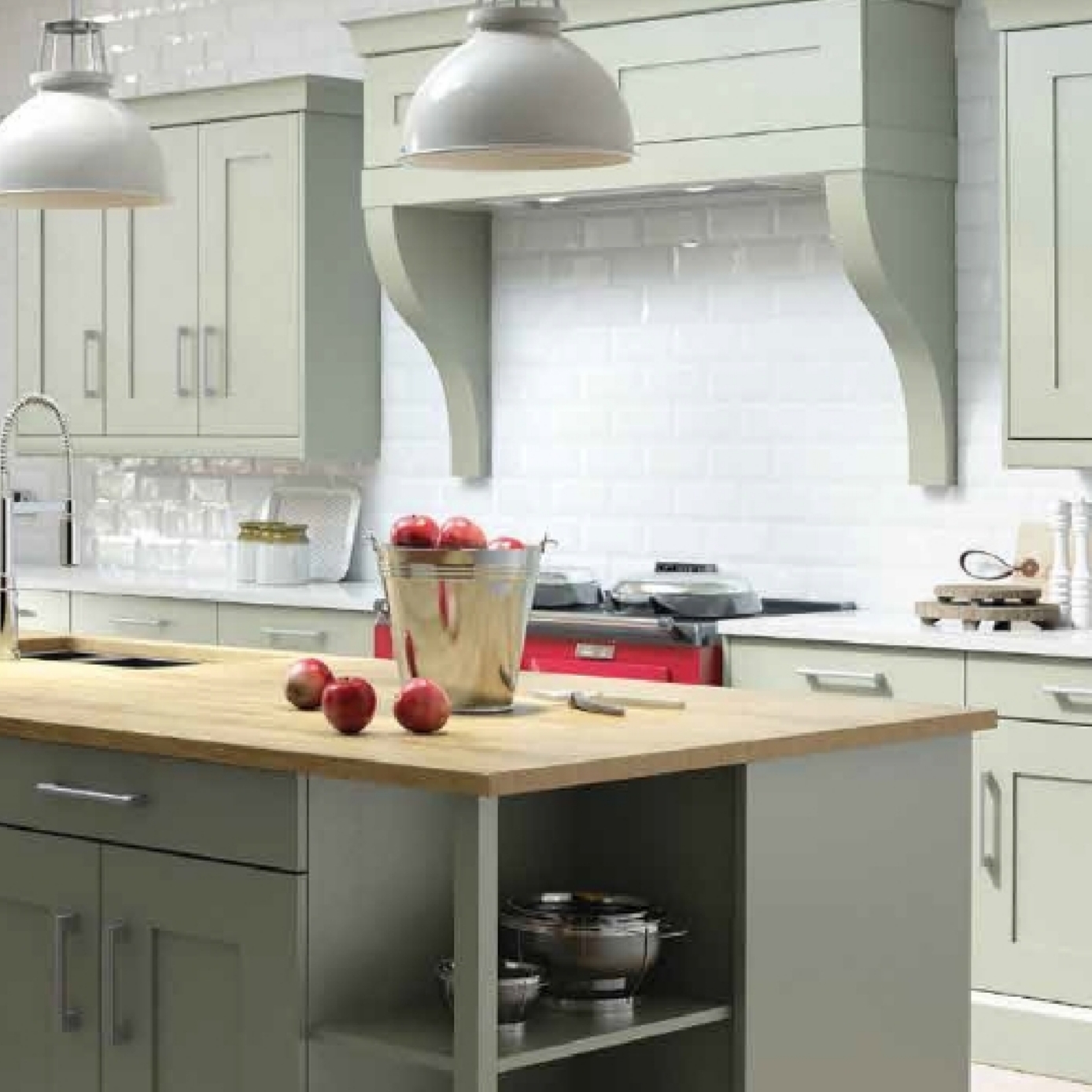 Making full use of its broad solid oak stiles, the Mowbray is unapologetically bold and robust. It is available as a painted door and in a light oak lacquered finish. This kitchen is painted in English Greyand uses our Plinth Skirting and Oversize Cornice.